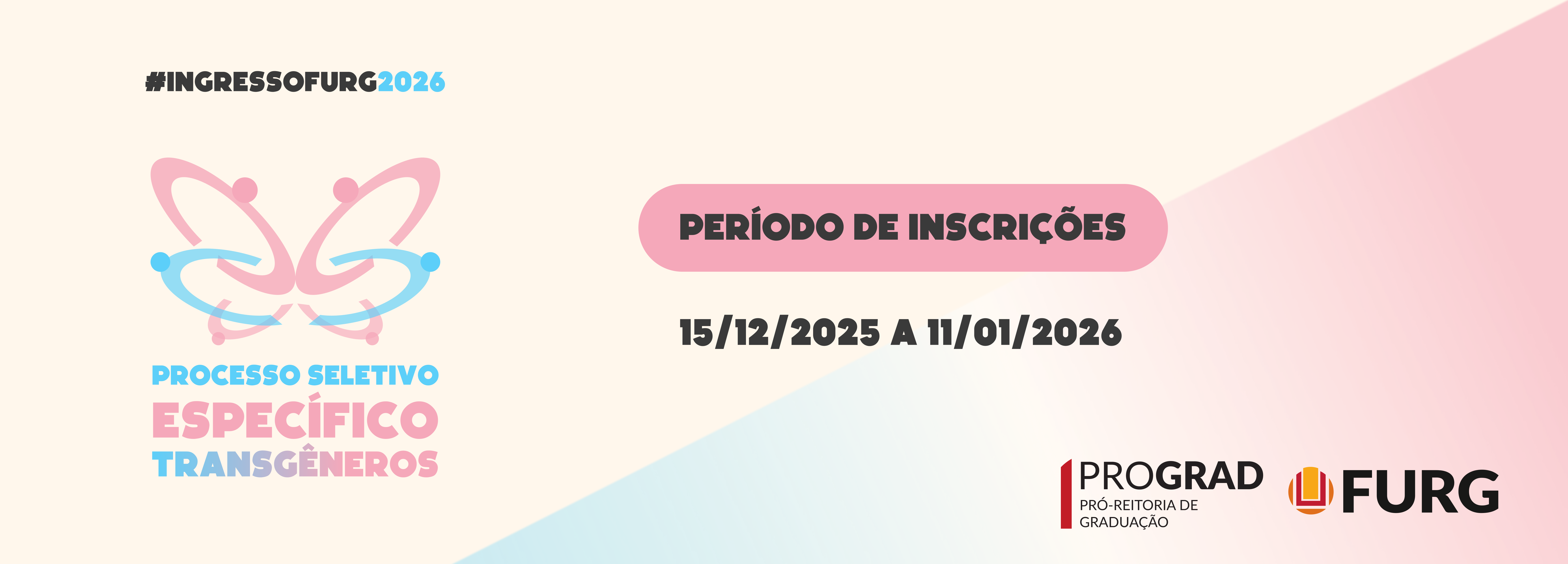 O Processo Seletivo Específico para Estudantes Transgêneros integra a Política de Ações Afirmativas da FURG para o acesso ao ensino superior e destina-se, exclusivamente, a candidatos transgêneros, compreendidas as mulheres trans, as travestis e os homens trans que concluíram o Ensino Médio em escolas públicas ou que comprovem o recebimento de bolsa integral em escola particular e que não possuam Ensino Superior completo. São oferecidas 10 vagas em cursos de graduação presenciais da FURG.